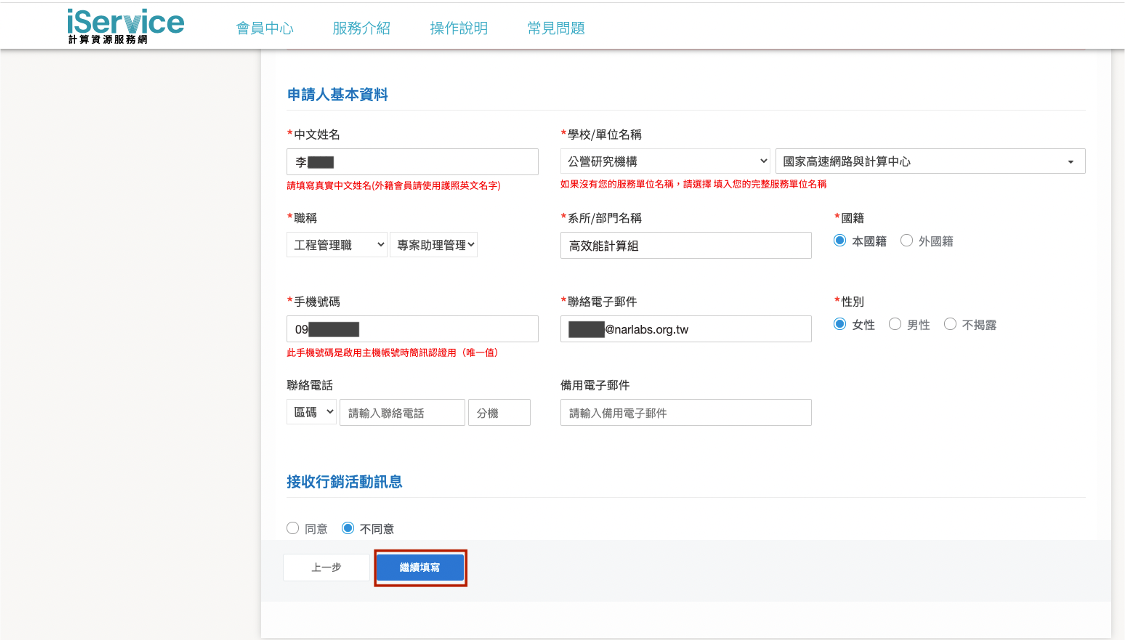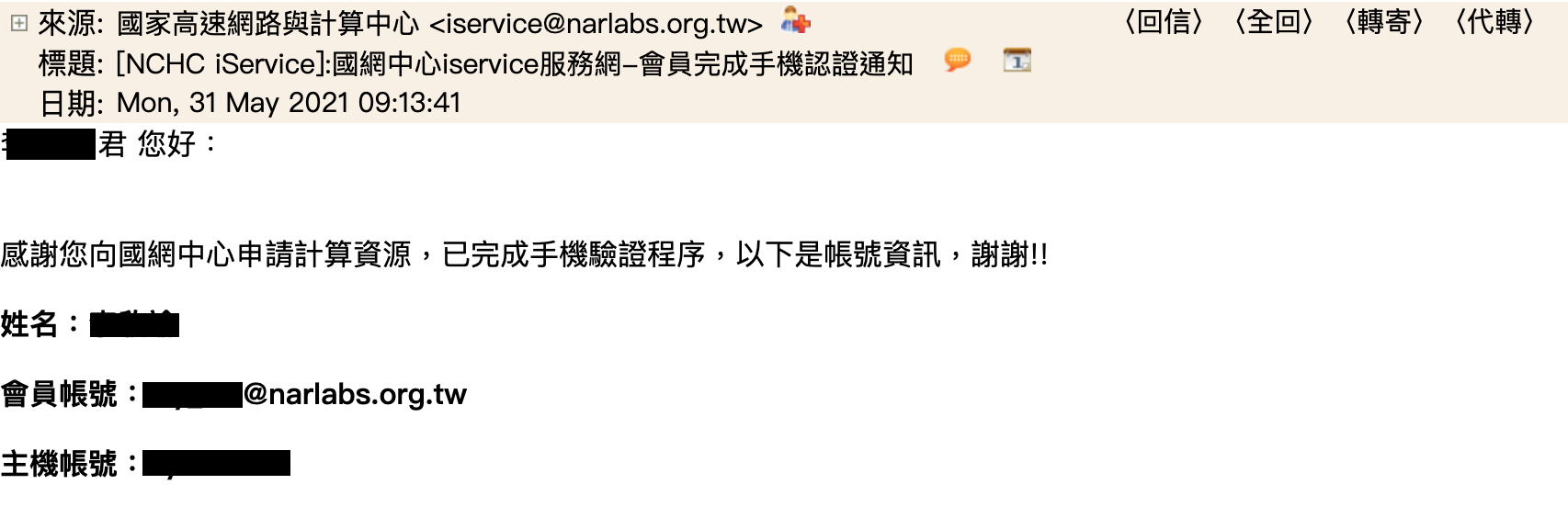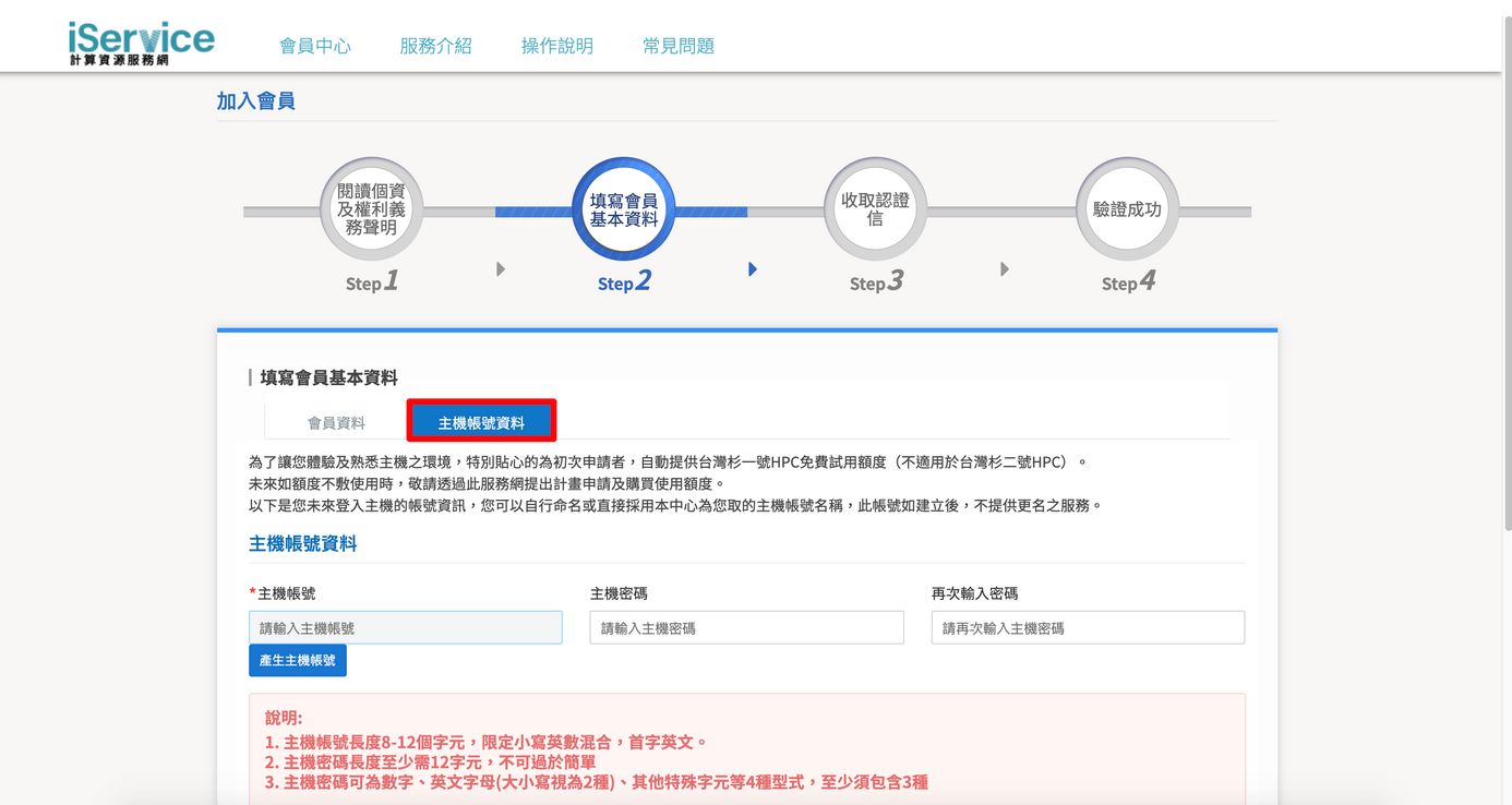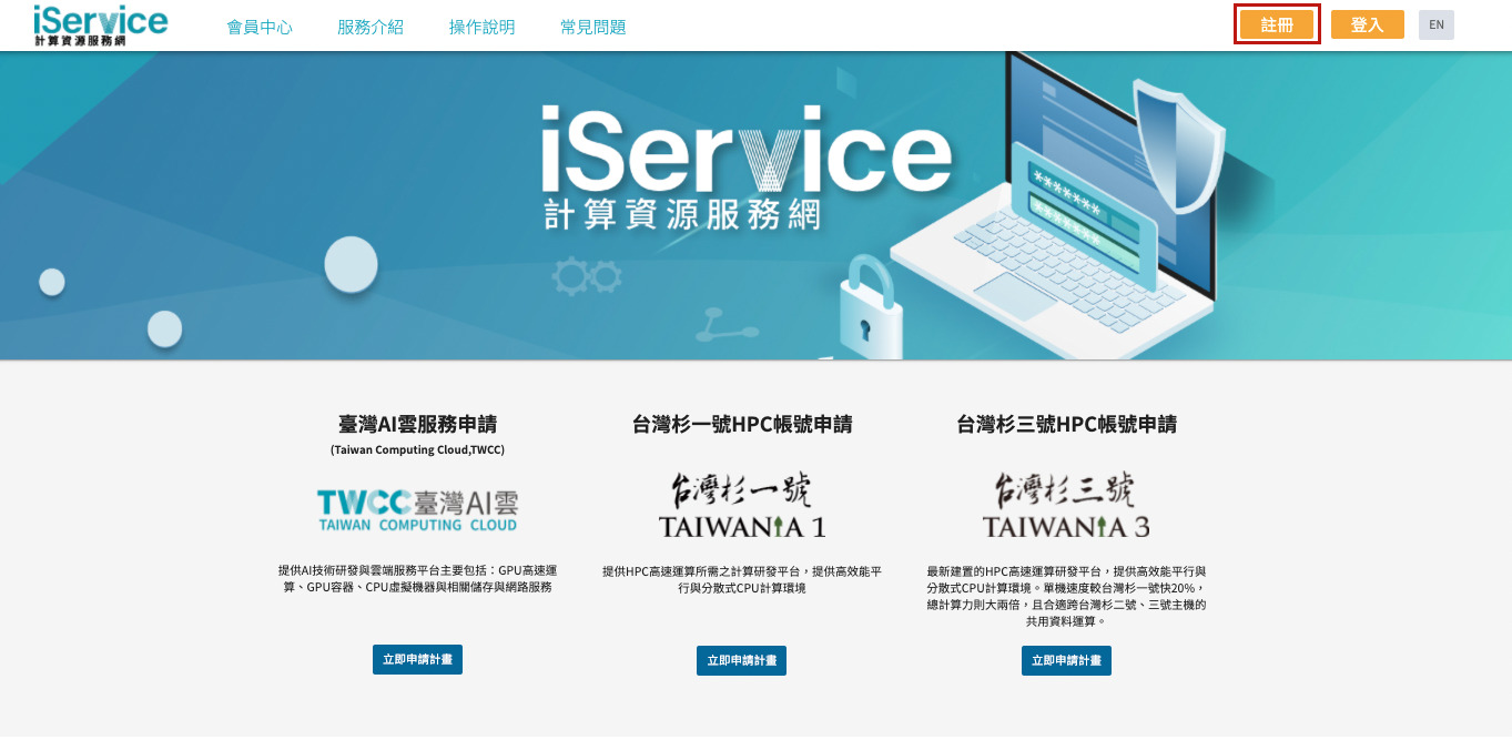 - 至 [iService](https://iservice.nchc.org.tw/nchc_service/index.php),點選右上角 「註冊」