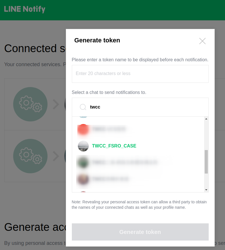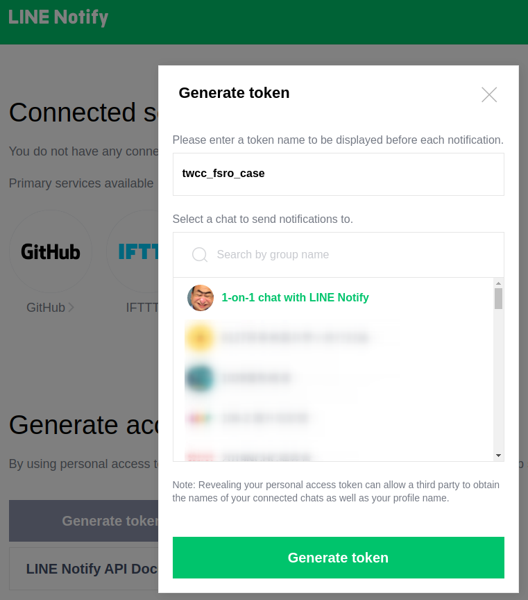 this access token will be used in [LineNotifier](https://github.com/TW-NCHC/LineNotifier) later.