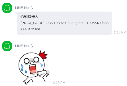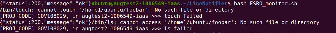 If `$FS_TEST` destination can not be tested, it will send a notification to Line, and console will show as following: