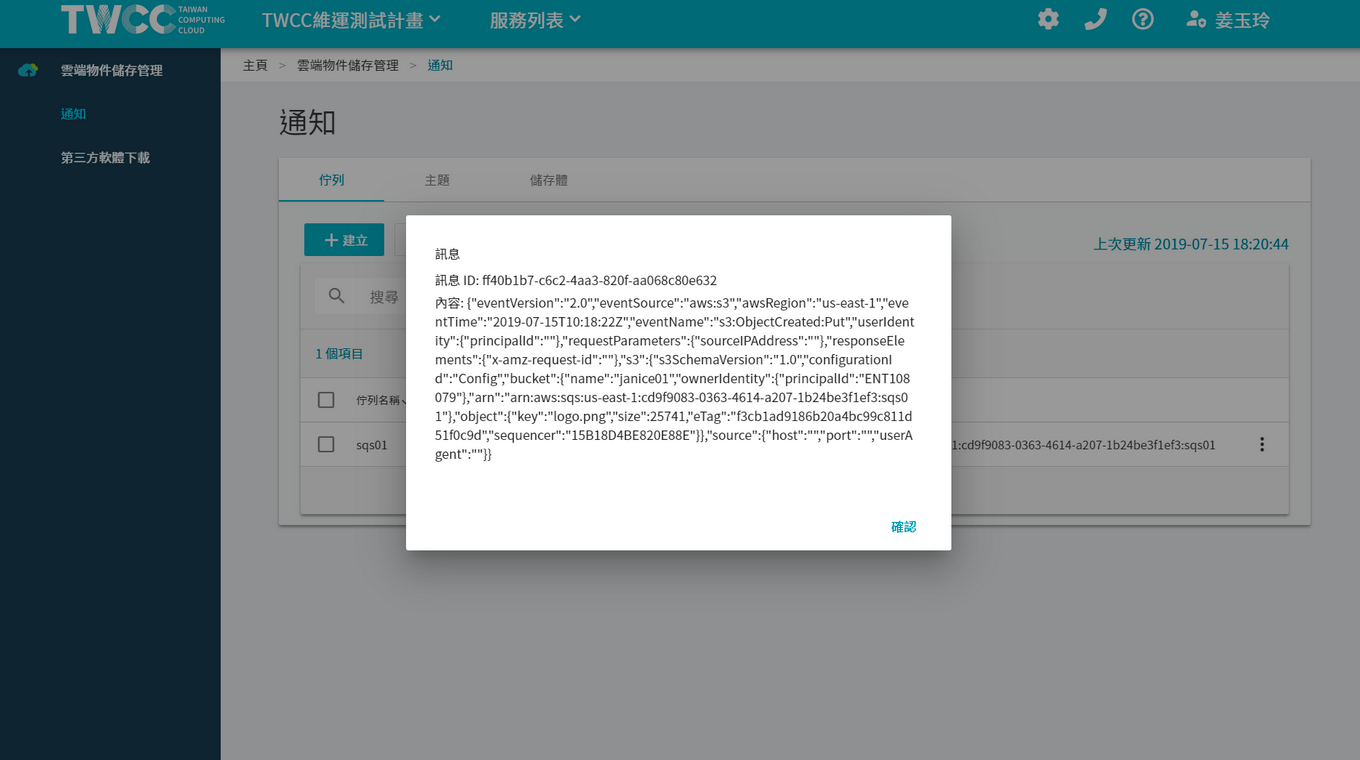 * First configuring "Set notification for bucket", select the name of the queue you just created and the name of the bucket you want to subscribe to and click "Submit". A message indicating successful submission will appear on the screen.