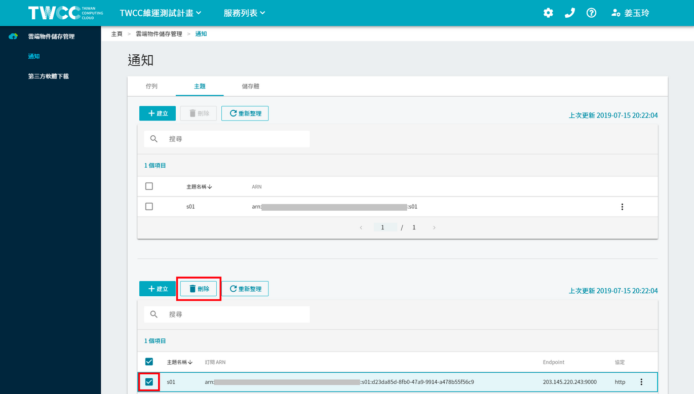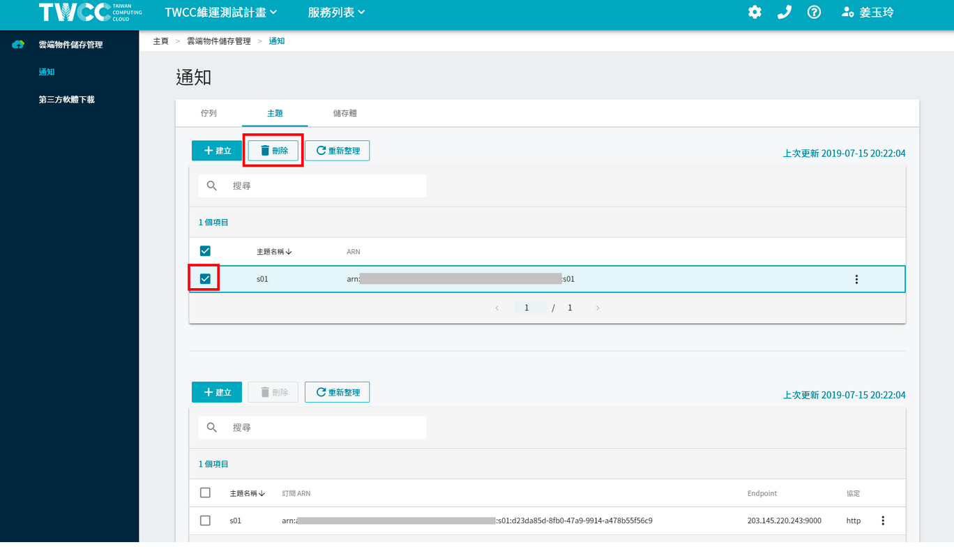* Click the checkbox in front of the topic list and click "Delete" to delete this topic.