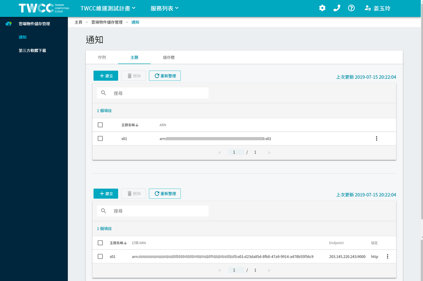 * After the connection is successful, you can see the files of the bucket on the TWCC Cloud Object Storage, or create a new folder (storage) or upload a file.