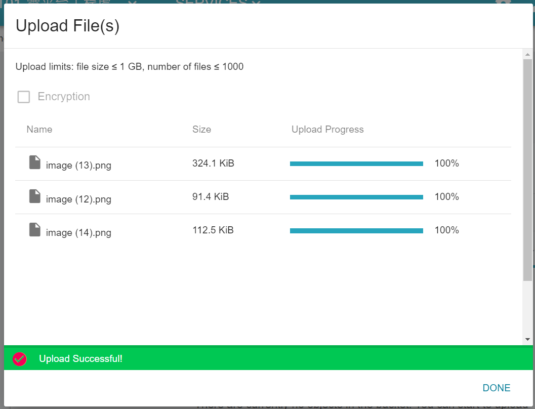 * After a message showing the completion of the upload, click “DONE”.